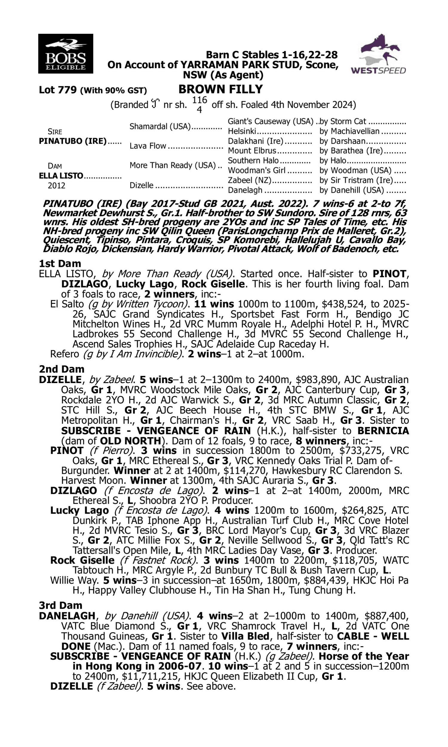 The filly is half sister to $450,000 earner El Salto and hails from the family of star filly Pinot who won 3 of 6 starts including the VRC Oaks before being sold to Japan.